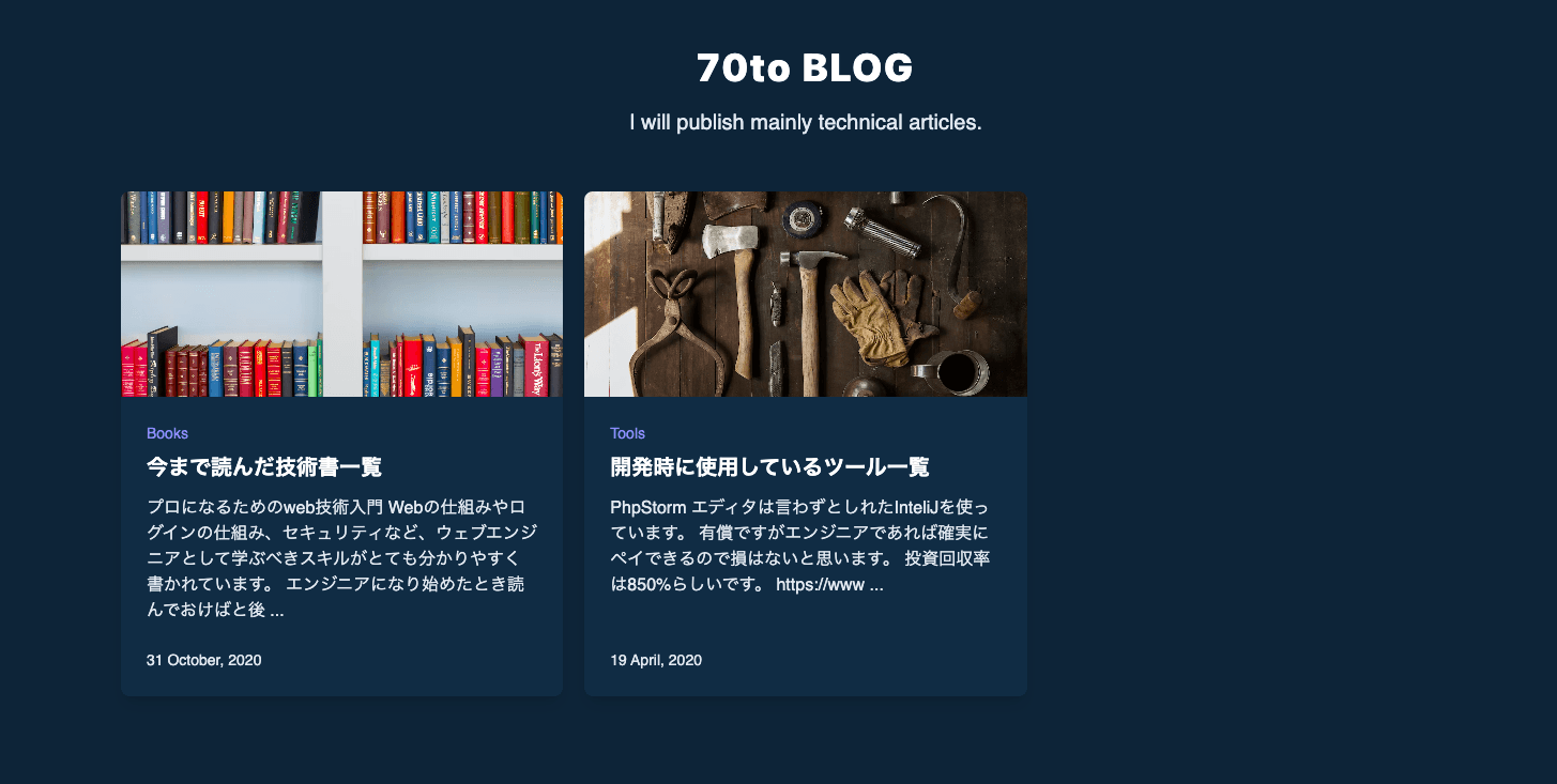 Dev BlogSeptember 5, 2022プログラミング、技術情報、開発ノウハウなどを書くブログ URL Closed Stack Gridsome TailwindCSS Hosting Netlify