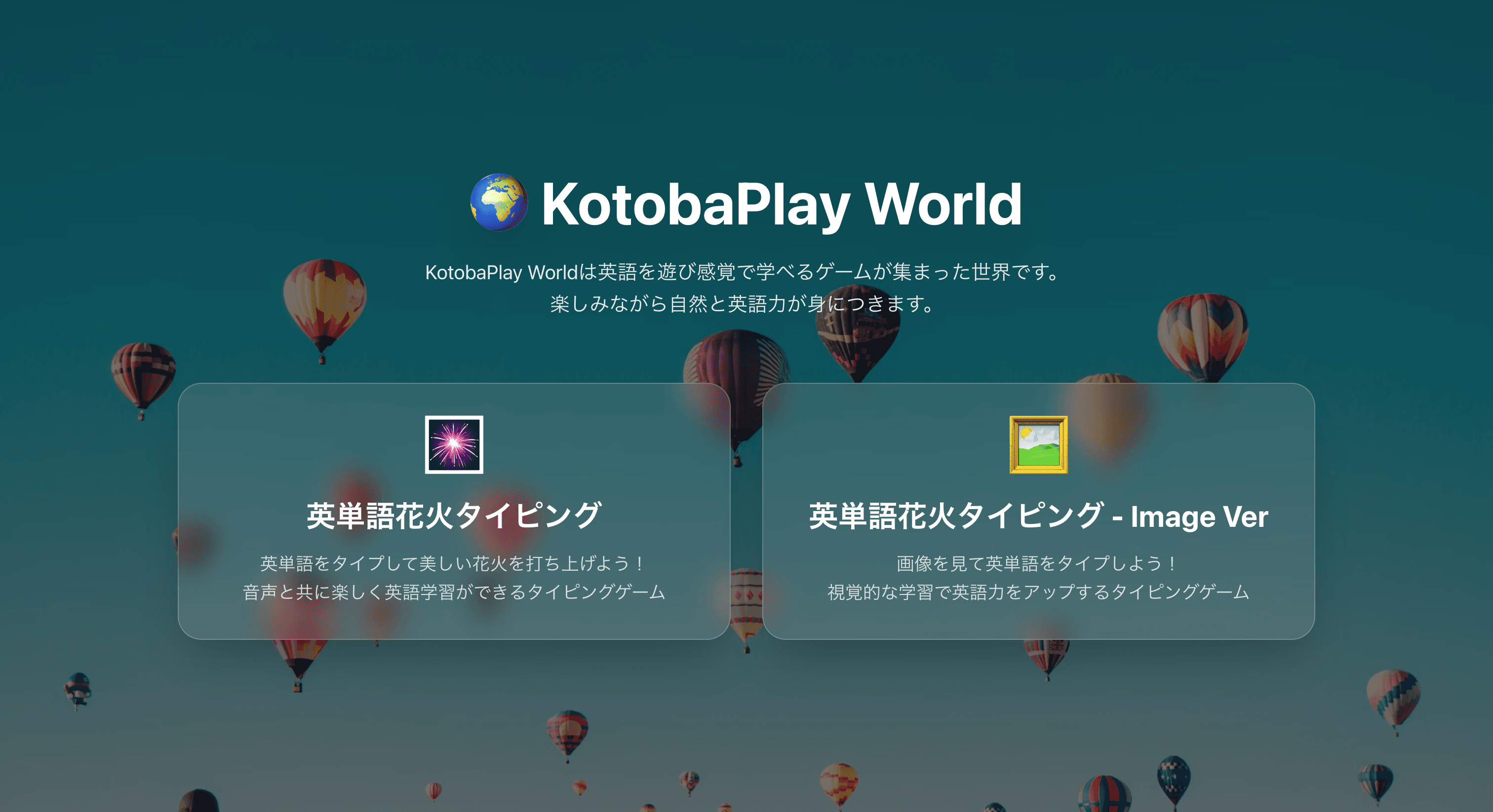 KotobaPlay Worldは英語を遊び感覚で学べるゲームが集まった世界です。楽しみながら自然と英語力が身につきます。